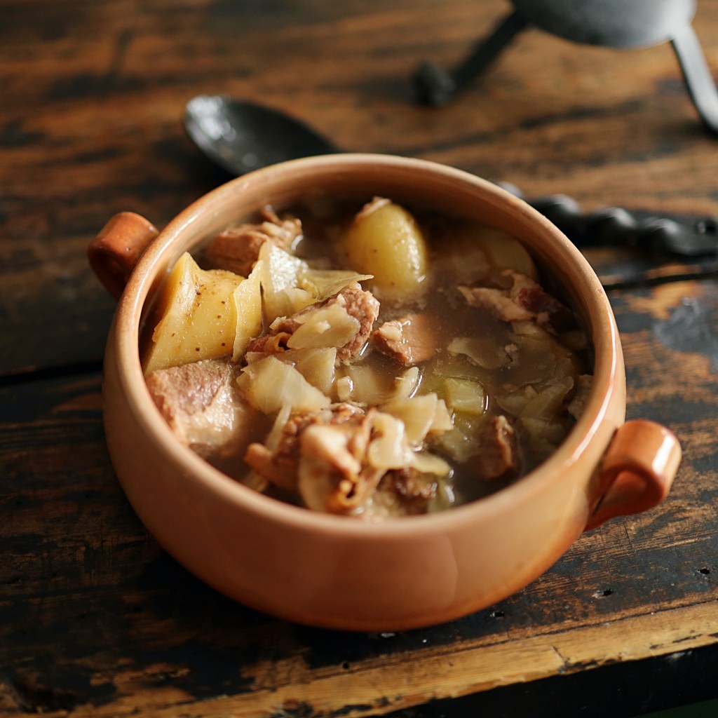Perhaps there are many versions of this same stew and they’re not even called ”medieval”, just because the ingredients are very usual. I happened to have all these in hand as I am doing my weekly broth anyway and Sauerkraut, plus some beef meat pieces really made this much better.